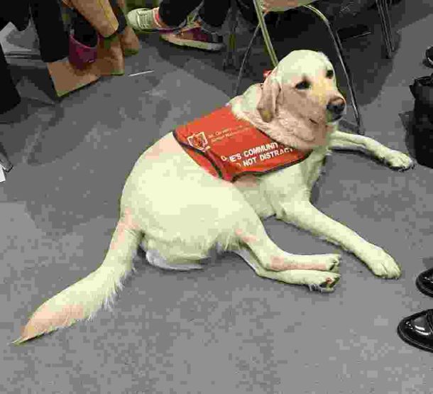 Jen Maher, St Oliver Plunkett's JNS with Thor the Therapy Dog